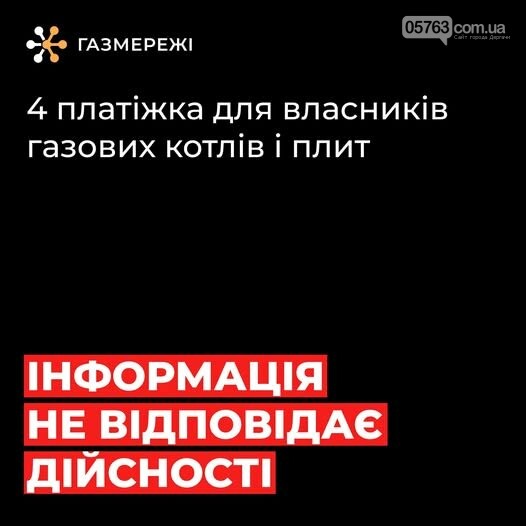 У ЗМІ з’являються повідомлення про нібито «четверту платіжку за газ» для власників котлів і плит. Ця інформація не відповідає дійсності.